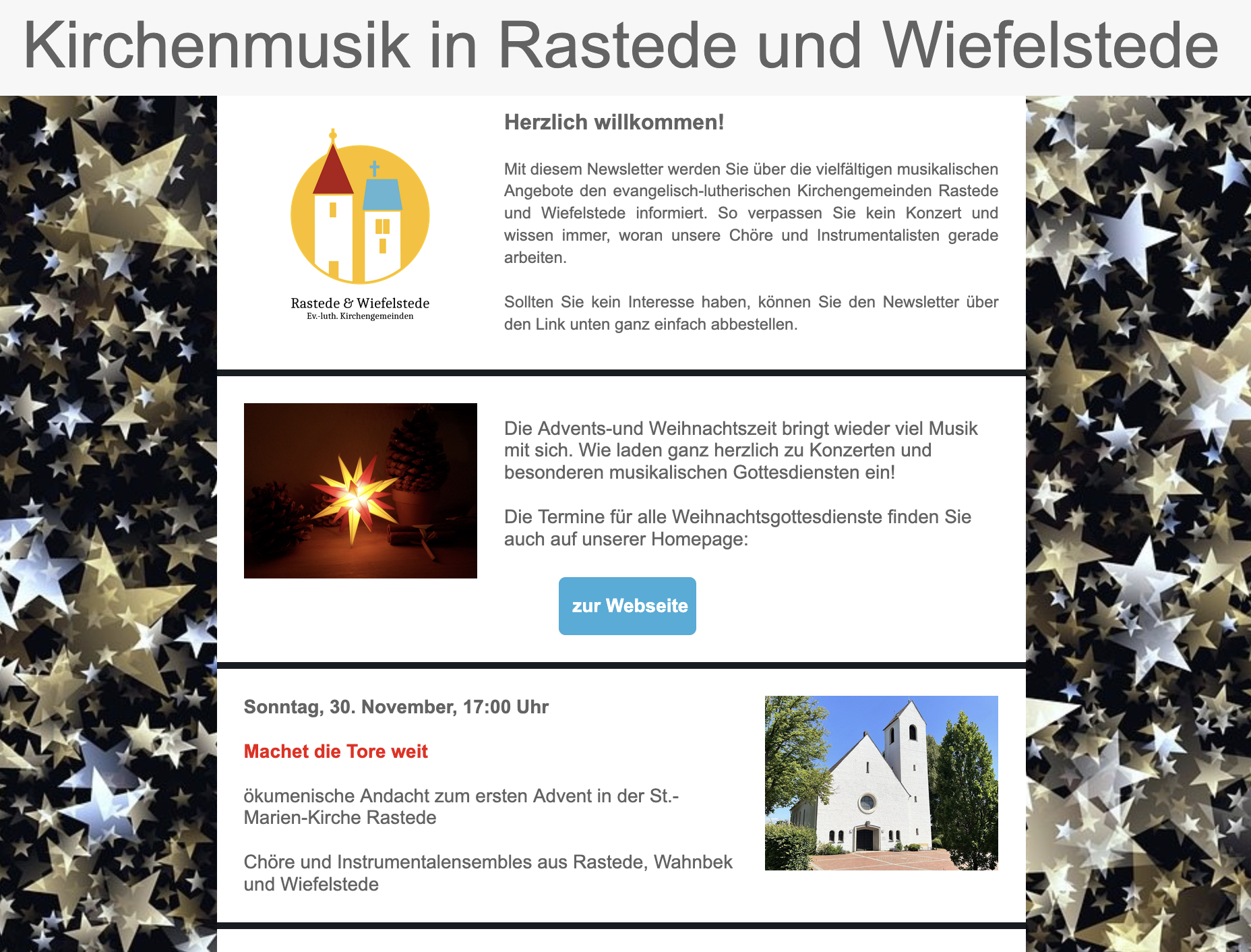 Stellvertretungen: Sylvia Bäcker/KG Wiefelstede, Christian Buss/KG Rastede, René Fredeweß/KG Edewecht, Leon Siefken/KG Westerstede, Dr. Isabel Suhr/KG Friedrichsfehn-Petersfehn, Sandra Tönjes-Boer/KG Edewecht Pfarrerinnen: Sabine Feuerhake/KG Reekenfeld, Wiebke Perzul/KG Elisabethfehn, Martina Rambusch-Nowak/Berufene